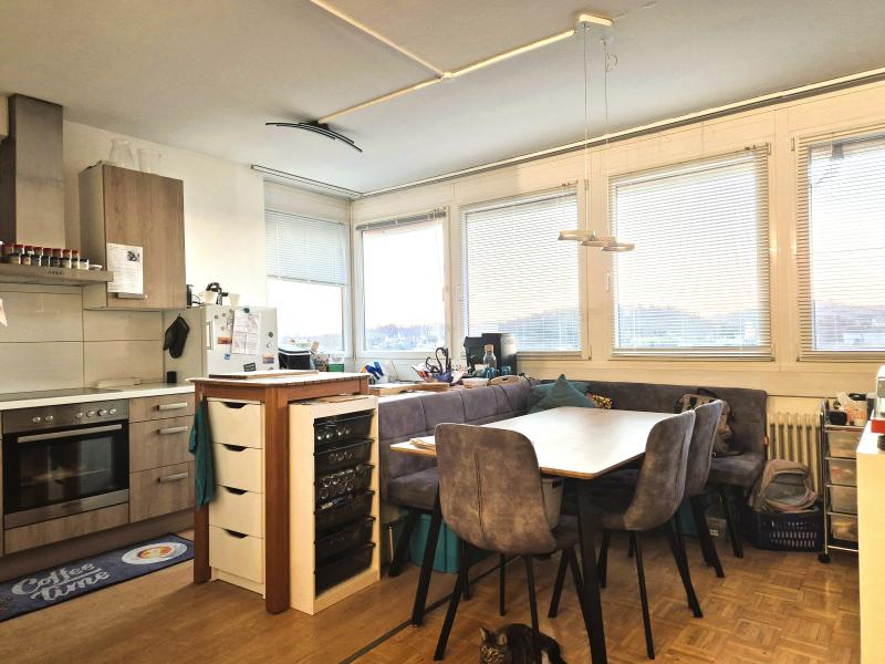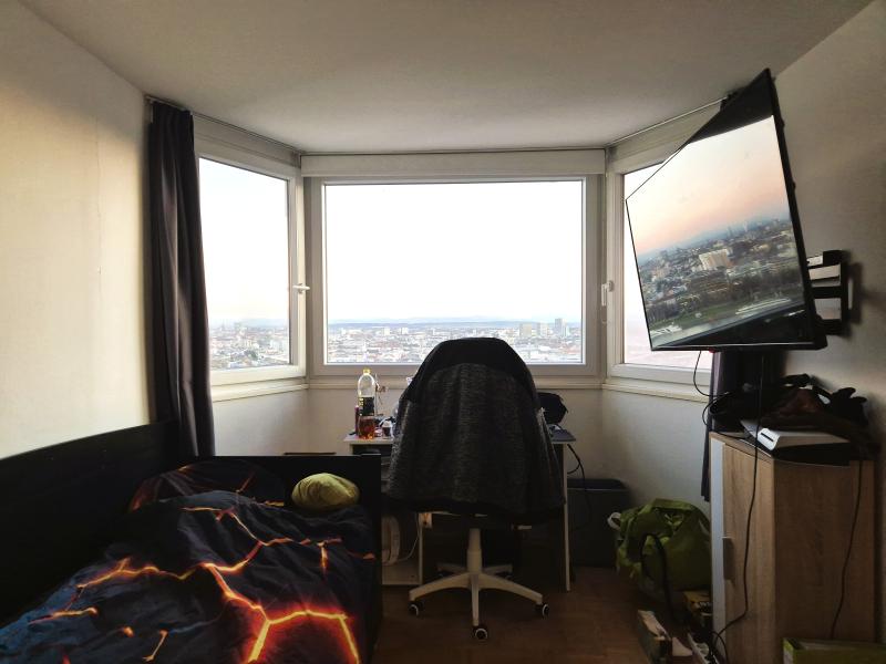 Besondere 3-Zimmerwohnung im obersten Stock (19. Stock). Die Wohnung ist mit einer Küche inkl. Geräte, Badmöbel und Schrankraum ohne Ablöse ausgestattet. Das Highlight der Wohnung ist die tolle Fernsicht und die bequeme Infrastruktur im Haus! Ein Tiefgaragenplatz kann zusätzlich um € 70,00/Monat inkl. BK/MWST gemietet werden. Bezug ab Jänner 2026!