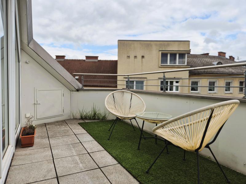 Diese stilvolle Innenstadtwohnung mit Dachterrasse auf 2 Ebenen befindet sich in der Gärtnerstraße 16, 4020 Linz im 3. OG und DG eines gepflegten Hauses. Im 3.OG erwarten Sie: eine einladende Diele, eine Küche mit Essbereich, ein großzügiges Wohn- Esszimmer mit weitläufigen Fensterflächen, ein Schlafzimmer, ein Bad sowie ein AR. Im DG befinden sich 2 weitere Schlafräume, ein Schrankraum und ein großzügiges Bad, sowie die Dachterrasse mit herrlichem Blick auf den Volksgarten. Die Ausstattung ist hochwertig und durchdacht: modern Einbauküche inkl. Geräte, Gaskamin im Wohn- Essbereich bequem per EIN/AUS-Schalter bedienbar, beide Bäder in edlem Marmor - im Hauptbad mit WM samt Trocknerfunktion, schöne Holzböden, Beschattung, Video-Gegensprechanlage sowie ein Wohnungseingang auf jeder Ebene für zusätzlichen Komfort. Ein Lift ist selbstverständlich vorhanden. Die Lage überzeugt durch perfekte Infrastruktur: Straßenbahn, Bus, Einkaufsmöglichkeiten, Schulen und der Bahnhof sind in unmittelbarer Nähe. Optional kann ein Garagenplatz im Nachbarhaus um € 100,--/Monat inkl. MWST angemietet werden.
